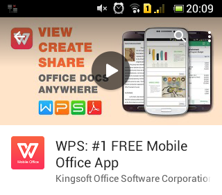 Android端末のPlayストアからWPS Officeを探してダウンロードします。(完全無料です)
