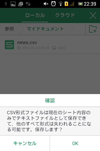「OK」を選択すれば「マイドキュメント」に「news.csv」というCSVファイルが保存されます。